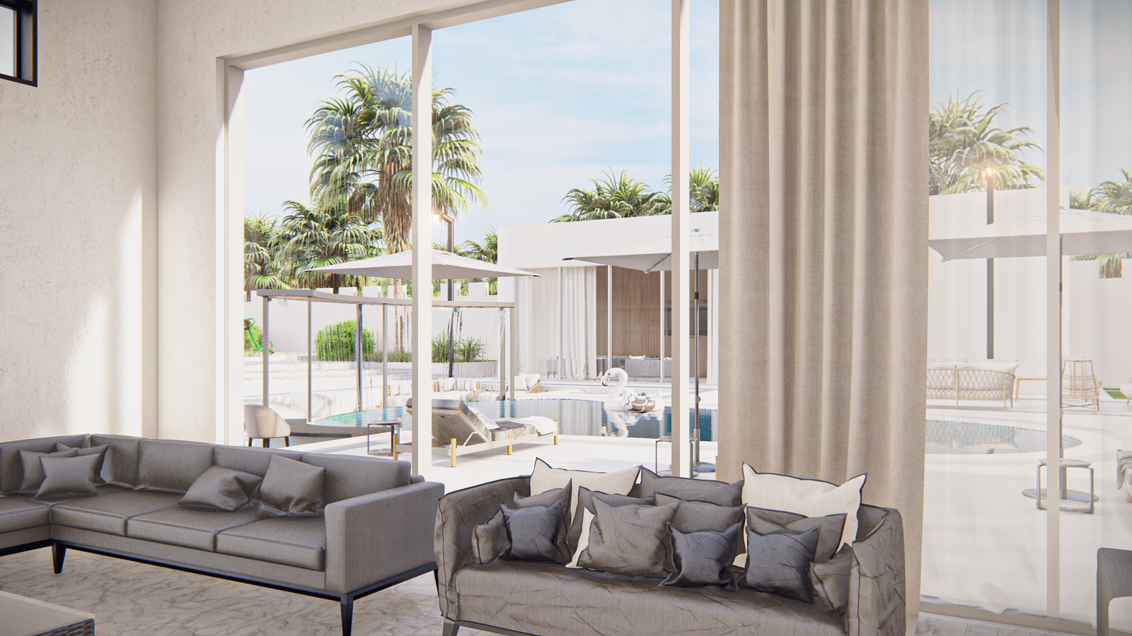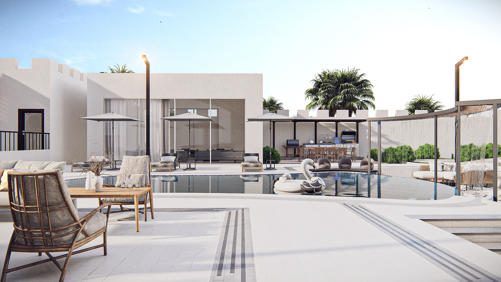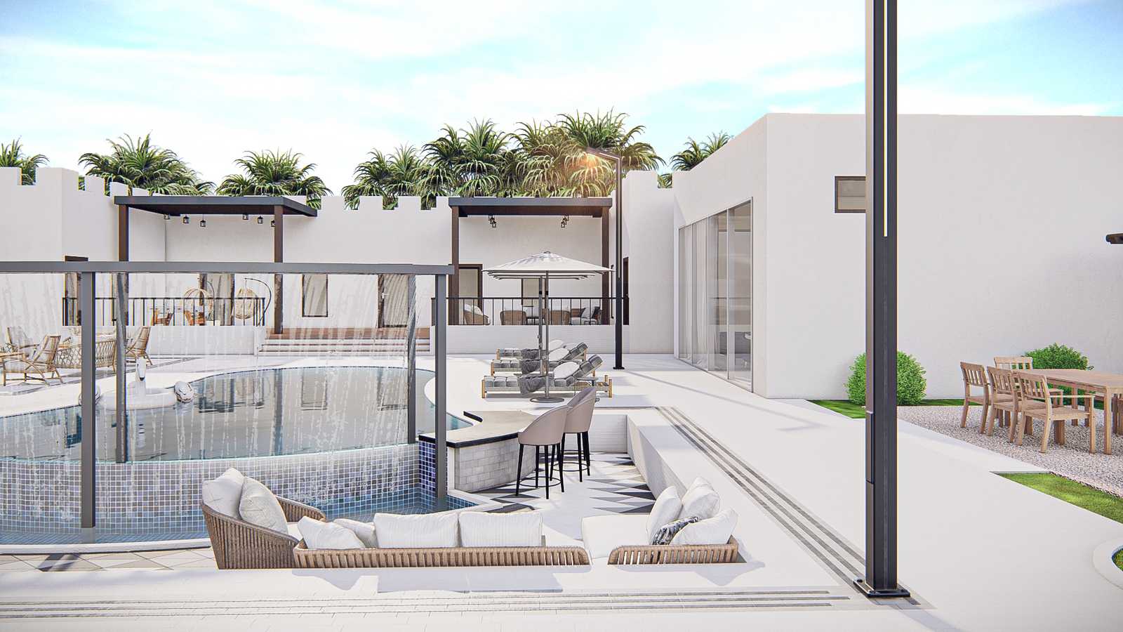 seamlessly connecting with lounge areas and an outdoor dining