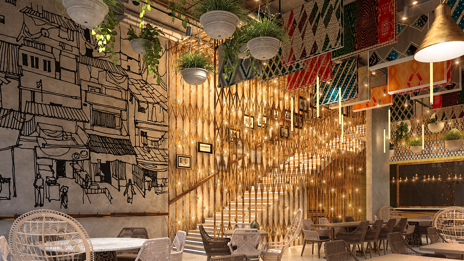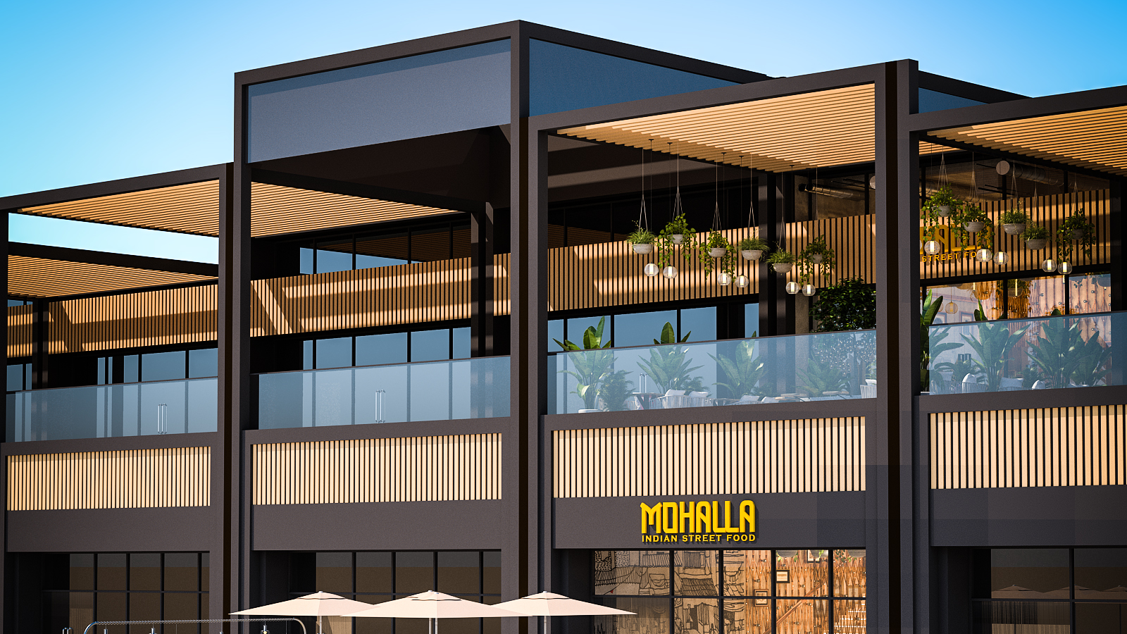 Open terraces with greenery introduce a fresh, natural touch to the